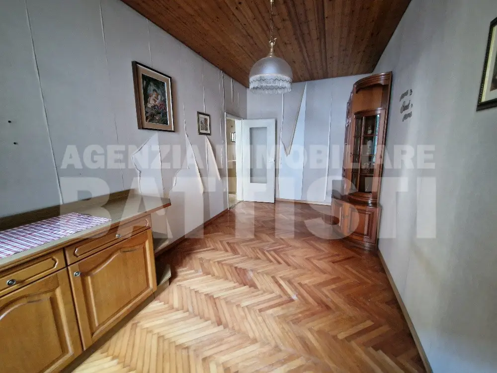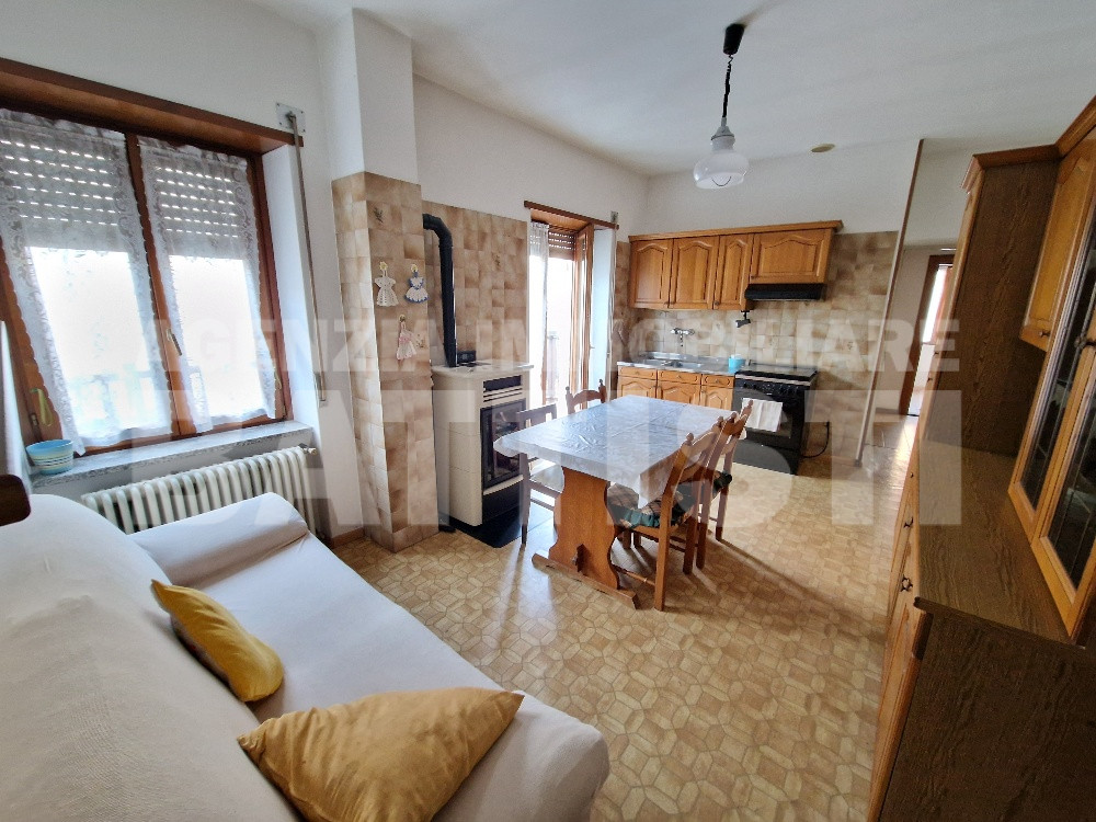 RIF 038 BIS Nel centro storico del paese, vendiamo appartamento a secondo e ultimo piano degli anni ‘80 di 100 mq con ingresso, loggia, soggiorno con cottura, poggiolo, due stanze più studio o salotto e bagno, qui attraverso una scala retrattile si può anche andare in soffitta, che rimane di proprietà.