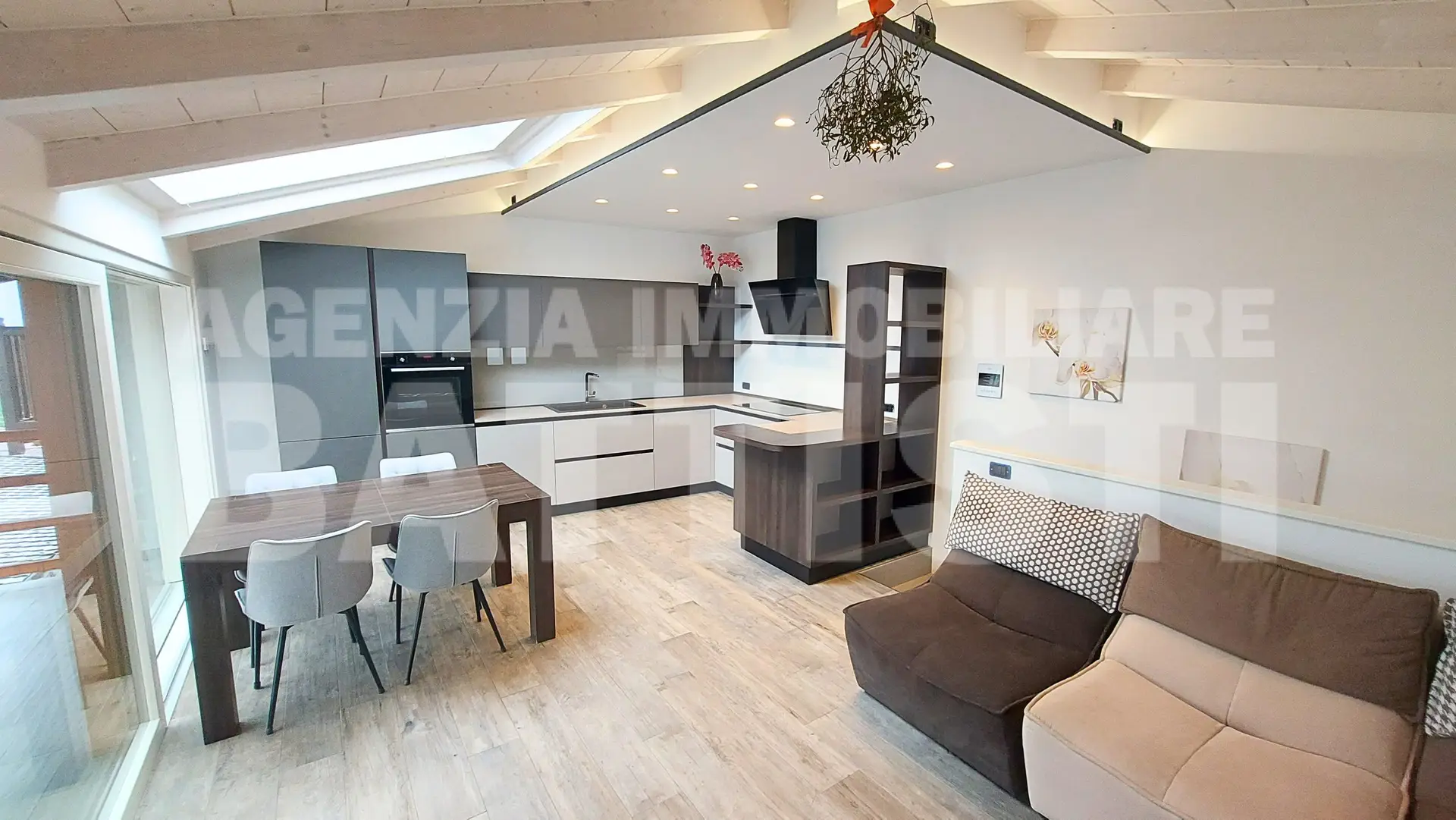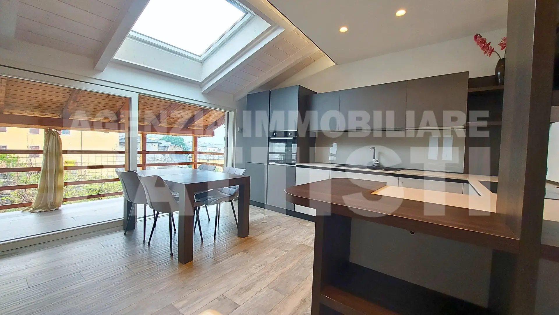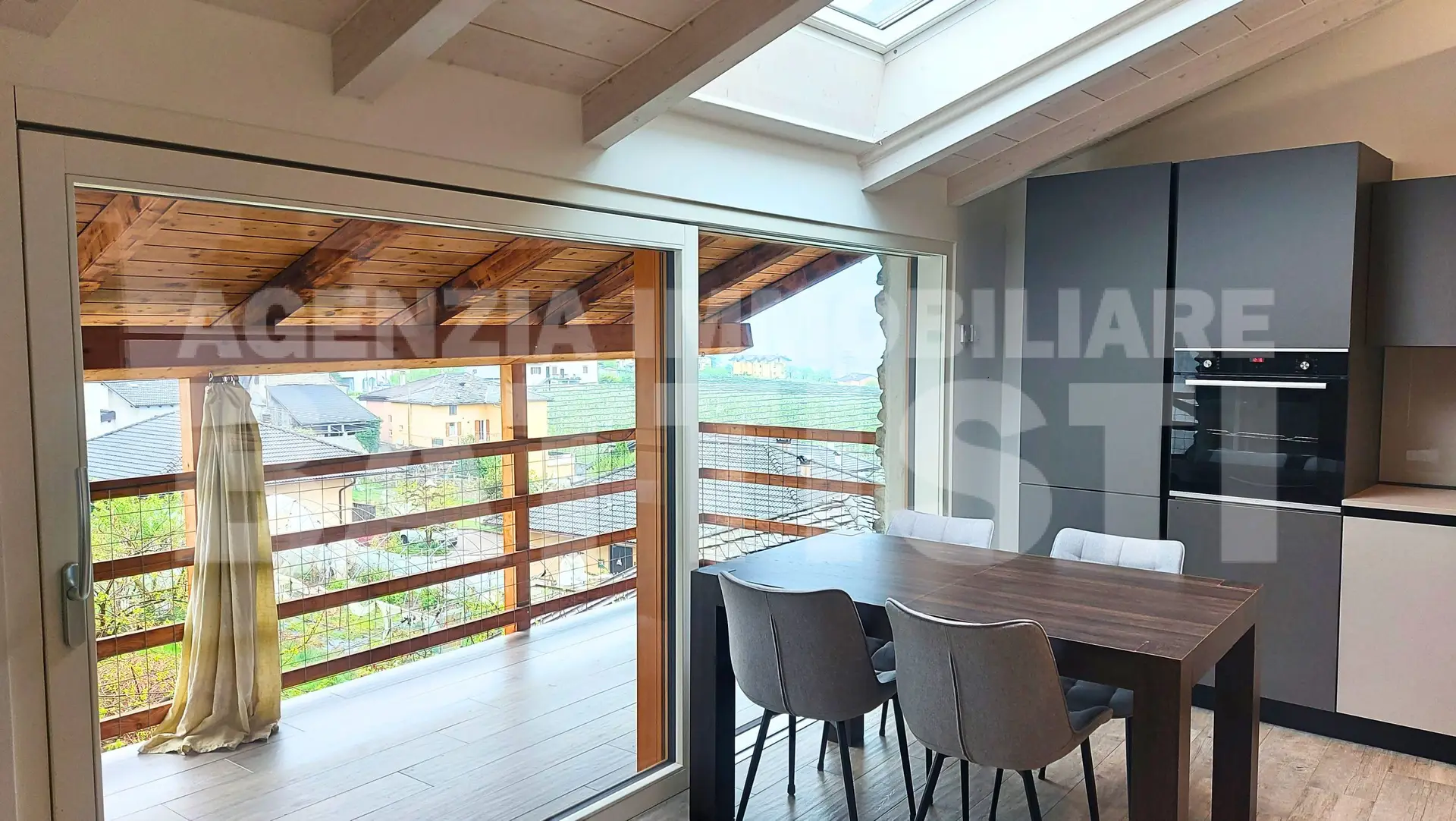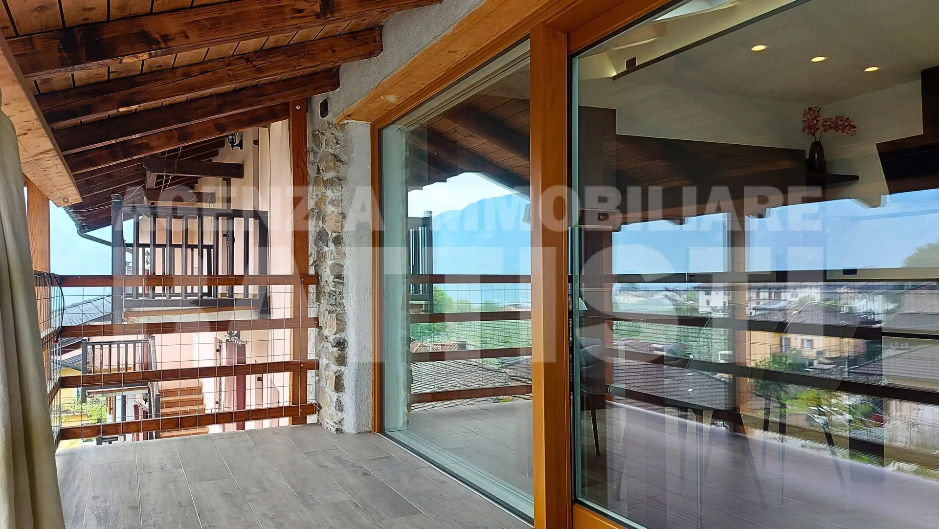 PIANO MANSARDA (30 mq comm): luminosa e panoramica area living con cucina, sala e zona pranzo + balcone panoramico prospettante il caratteristico borgo di Tenna ed il Lago di Caldonazzo.