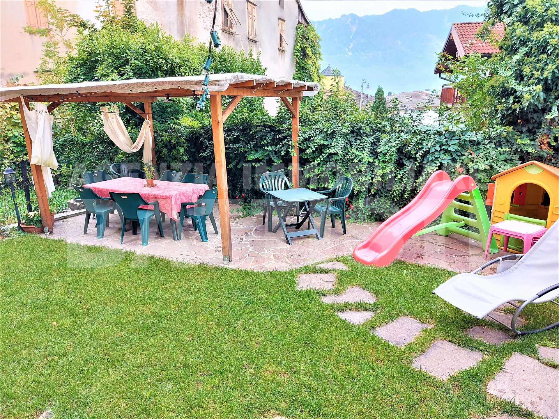 RIF 086 A pochi passi dal Parco Asburgico in centro storico di Levico, porzione di casa libera su tre lati prevalentemente esposta a sud, completa di giardino (di 50 mq) , quale preziosa pertinenza in zona tranquilla e riservata.